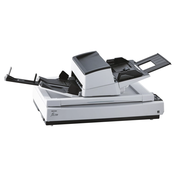 Heavy-duty & flexible production scanner for professional use The fi-7700 allows you to scan A4 landscape documents at 100 ppm/200 ipm (200/300 dpi). The scanner is suitable for continuous scanning because it allows you to load up to 300 sheets at a time which improves efficiency when scanning a large volume of documents. In addition, various types of documents, such as thin paper, plastic cards, books, magazines, envelopes, and long page documents can be scanned on this scanner. Fast scanning — up to 100 ppm in color or monochrome, landscape Paper chute capacity up to 300 sheets Capable of handling various thicknesses and sizes Paper Protect function which protects against paper jams by detecting anomalies in sound (iSOP: Intelligent Sonic Paper Protection) and document length Flexible design and LCD panel for easy operation Independent Side Guides for easily aligning mixed size documents