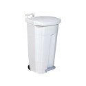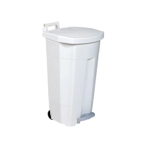 Beholder med fotpedal. Luktfri, hygienisk og mobil. Avfallsbeholder med stor åpning fremstilt av polyetylen i høy kvalitet. Enkel å flytte rundt med de integrerte håndtakene. Avfallsbeholderen er hygienisk i bruk da den åpnes med bred fotpedal. - Mobil avfallsbeholder med fotpedal for hygienisk deponering av avfall - Godkjent til bruk i kjøkkener og i medisinske miljøer - Beskytter innholdet mot rengjøringsprodukter og fukt fra gulvet - Bunnen er beskyttet av et lag gummi som beskytter mot fukt fra underlaget, og de avrundede hjørnene gjør den enkel å rengjøre - Mål (HxBxD): 89,5 x 51 x 51 cm