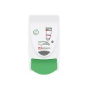 1 liter dispenser for etter-arbeide krem. Betjening av dispenseren er enkel og brukervennlig, og systemet er økonomisk i bruk, da nøyaktig dosering minimerer produktavfall og sløsing. Trykknappen beskyttet av BioCote® og alle manuelle dispensere har livstidsgaranti.