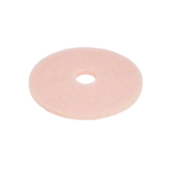 3M Scotch-Brite ™ Lys rosa gulvpad er en spesialdesignet gulvpad, som består av en bestemt fiberblanding for å gi en raskere polering, en meget god glans og effektiv fjerning av merker fra skosåler, tralle hjul, osv. Dette er en gulvpad som er veldig myk og som derfor ikke vil ripe eller skade beskyttet gulv. For bruk på maskiner som kjører på ultrahøy hastighet (1500 o/min og over). - Åpen konstruksjon for enkel vask - Bruksområder: Polering, Polering, Rengjøring - Fasong: Rund - Kornstørrelse: Fin - Maskinhastighet: 1500-3000 RPM - Materiale: Ikke-vevd polyesterfiber - Farge: Rosa - Diameter: 432 mm - Bredde: 25,4 mm