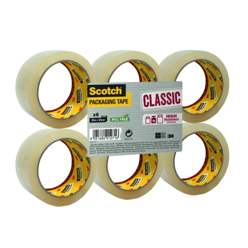 Classic-pakketeipen fra Scotch er et pålitelig og brukervennlig produkt til sikring av pakker og esker. Teipen er svært sterk og bestandig mot slitasje og skade, men kan skjæres opp når det er behov for det. Den kommer lett av rullen ved manuell bruk, men den kan også brukes med en teipdispenser eller i automatiske forseglingsmaskiner. Limet har høy bestandighet og inneholder ingen løsemidler. Det er også vannbestandig, slik at du trygt kan bruke det på pakker, kartonger, brev og annet. Den PVC-frie teipen er egnet til generell bruk i hjemmet, på kontoret eller i butikk.