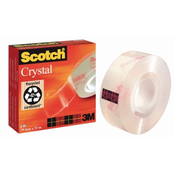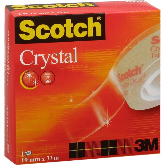Den klassiske krystallklare Scotch®-teipen har et langvarig lim som er klar når det påføres og som ikke gulner over tid. Denne glansede Scotch®-teipen er meget pålitelig og sterk, og har gjennomsiktige kvaliteter som gjør den vanskelig å se på pakker eller papirgjenstander
