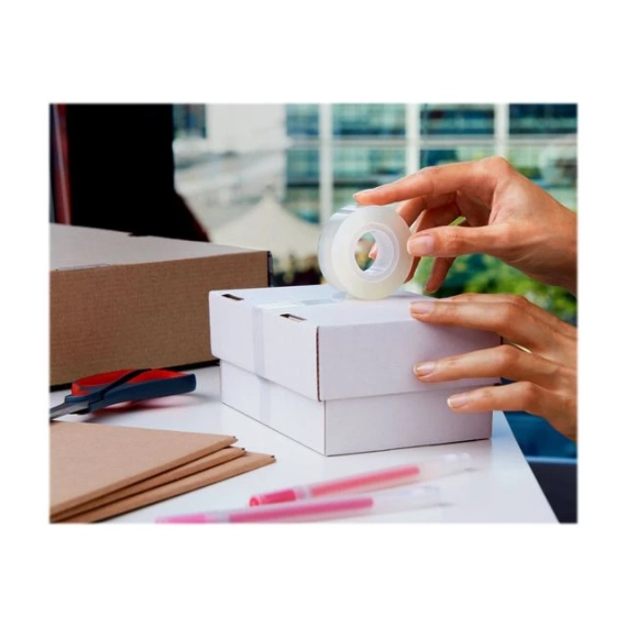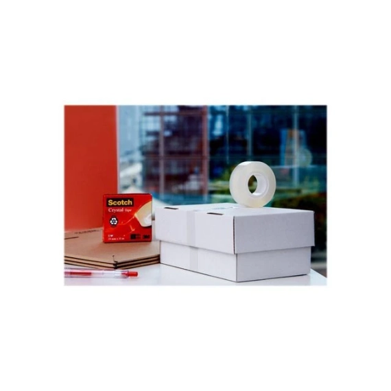 Scotch® Krystalltape har sterk limkvalitet for mange oppgaver, inkludert generell innpakning, forsegling og reparasjon. Motstandsdyktig mot varmt vann og tåler oppvaskmaskin. - Størrelse: 19mmx33m