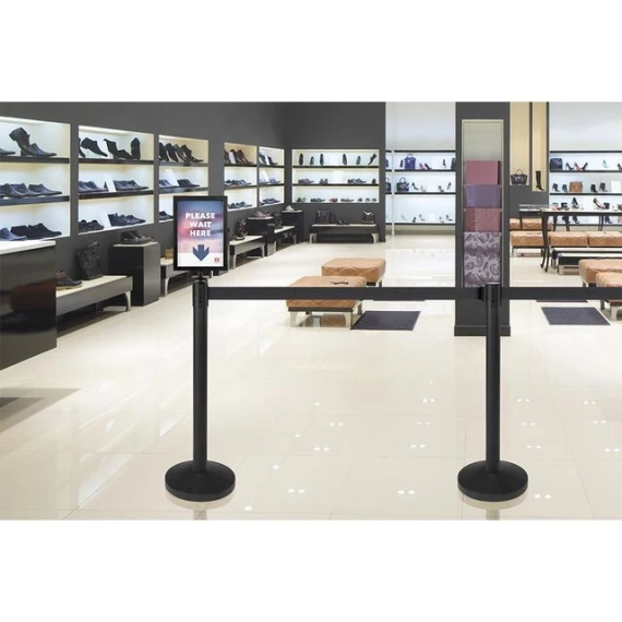 Veiled og kontroller kundene dine enkelt med køordnersettet Securit® Budget Retractable Barrier Set. Køordnere er mye brukt innen serverings-, detaljhandel- og arrangementindustrien, og er en perfekt måte å administrere plass og kontrollere folkemengden på. Disse er laget av rustfritt stål med svart pulverlakk og kommer med svarte detaljer, en flat topp og gulvbeskyttende baser. Har en fireveis festeanordning som lar deg stille opp så mange køstolper som nødvendig. - Kommer i et sett med to, og hver køstolpe kommer med et integrert 2-meters svart uttrekkbar nylonbånd med lås - Dette settet er værbestandig og kan brukes både innendørs og utendørs - Utvid settet ditt med et matchende Securit® Barrier skilt i svart, for å vise informasjon eller veilede besøkende - 1 sett (2 stolper) med sort bånd - Farge: Sort