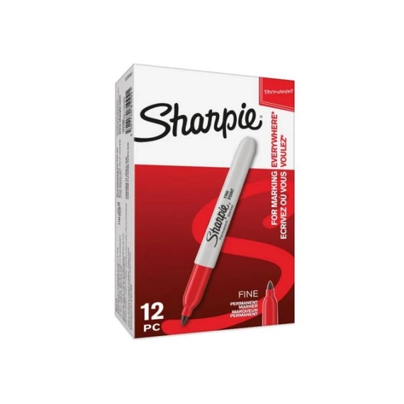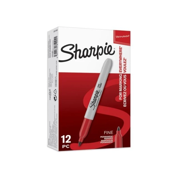 Sharpie® Fine permanent merkepenn gir en lyssterk, dekkende farge på nesten alle overflater. Denne permanente merkepennen kan skrive på mange overflater, inkludert papp, tre, metall, stein, plast og skinn. Sharpie® Fine har en smal kulespiss, med en linjebredde på 0,9 mm, som er ideell for skrift som må være pen og presis. Denne merkepennen har et spesialblekk som er vannbestandig og ikke falmer. Det inneholder ikke xylen eller toluen, noe som fører til mindre lukt. - Permanent merkepenn - Tynn spiss - Strekbredde: 0,9 mm - Nøyaktig skrift - Vannbestandig og luktfritt blekk som ikke falmer - Slank kropp som gir komfortabelt grep - Lommeklips og hette som gjør den bærbar - Farge: rød - Pakke med 12