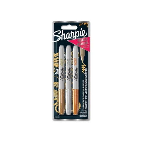 Sharpie Permanent Merkepenn Fine Metallic Gull/Sølv/Bronse 3-Blister