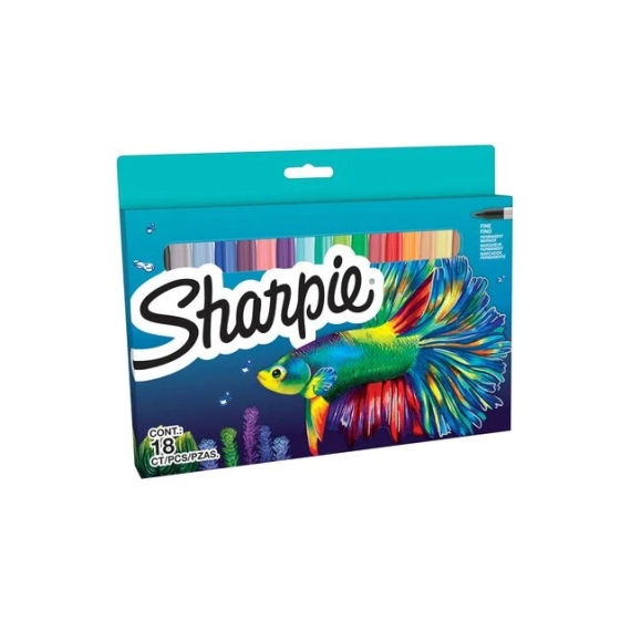 Sharpie Permanent Marker Fine i 18 ulike farger. Permanente tusjer som tørker raskt og motstår både vann og falming.
