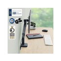 Leitz plassbesparende skjermarm har en positiv innvirkning på kroppsholdningen, fremmer riktig øyejustering og støtter nakke- og skulderkomfort når høyden på skjermen er justert riktig, og som anbefalt, til den ideelle ergonomiske posisjonen. Skjermen forblir stabil i alle høyder og vinkler og kan enkelt byttes mellom liggende og portrettmodus. Dens design er ideell der det er begrenset plass, og det vil frigjøre verdifull plass på skrivebordet. Ergonomisk utformet for å fremme velvære og øke produktiviteten. - Leitz plassbesparende skjermarm har en positiv innvirkning på kroppsholdningen, fremmer riktig øyejustering og støtter nakke- og skulderkomfort når høyden på skjermen er justert riktig, og som anbefalt, til den ideelle ergonomiske posisjonen - Plassbesparende design gjør at den kan monteres også der det er lite plass, uten at det går på bekostning av dybdeskarphet og optimal visuell ergonomi - Fjærassistert enkeltarm for enkelt å justere skjermens høyde (185 mm-435 mm) - Har 180° svingning og skjermrotasjon, +90°/- 90° tilt og tillater justering opp, ned, forover og bakover - Støtter 13'-34' flat eller buet skjerm som veier opp til 9 kg - Enkel å installere med den medfølgende hurtigutløsende avtakbare Vesa®-platen (75 og 100 mm) og silikongummi c-klemme som reduserer vibrasjoner og beskytter skrivebordoverflaten eller ved hjelp av hull (bordtykkelsesområde: 10-80 mm). Verktøy for montering og justeringer inkludert - Kabeladministrasjonssystem holder skjermkabler organisert for et ryddigere arbeidsområde - IGR og TÜV sertifisert