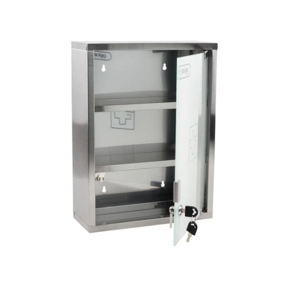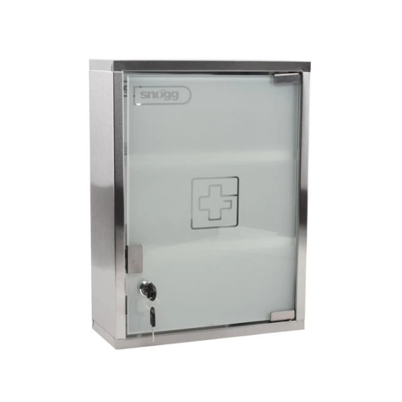 Frost medisinskap i moderne ståldesign fra Snøgg. Skapet kommer med to faste hyller og har frostet glassdør med magnetlås og nøkkel. - Skruer for veggoppheng medfølger - Leveres uten innhold - Størrelse: H40xB30xD12cm