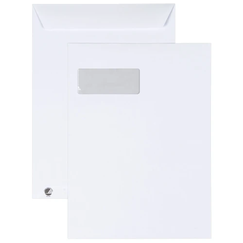 • Posen er har en selvklebned klaff med dekkark som beskyttter limet Konvolutter er i et hvitt 100 grams papir med vindu