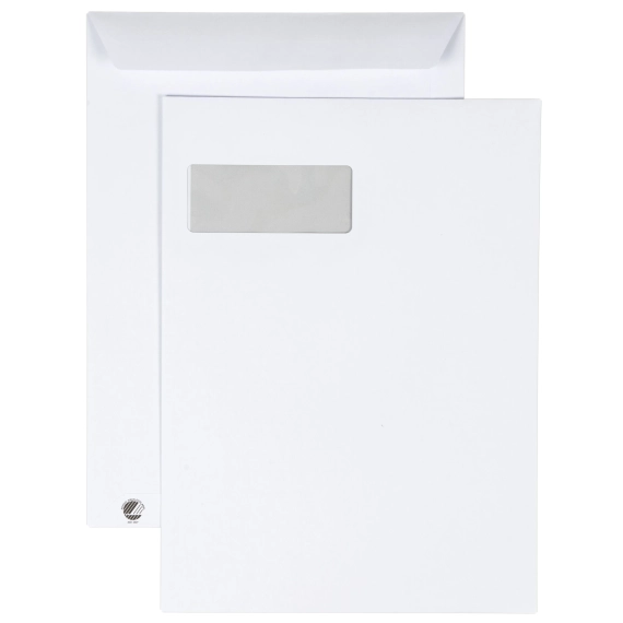 • Posen er har en selvklebned klaff med dekkark som beskyttter limet. Konvolutter er i et hvitt 100 grams papir med vindu