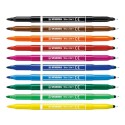 Spar plass og tid med den dobbeltsidige Trio 2in1-pennen som har tips for både skriving og maling. Den har en fin spiss (0,5 mm) som er perfekt til å skrive og skissere med, og en bred spiss (2,0 mm) som er ideell til fargelegging. Korkene kan stables oppå hverandre for å unngå at de går tapt. Pennen har en ergonomisk trekantet grepsone på hver side. Blekket er vaskbart.