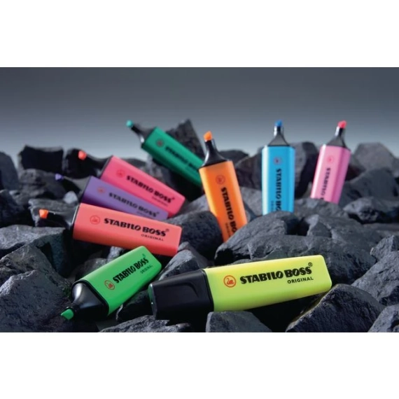 Merk tekst og uthev viktig informasjon med den klassiske STABILO® BOSS® ORIGINAL-merkepennen med Anti-Dry-Out-teknologi.