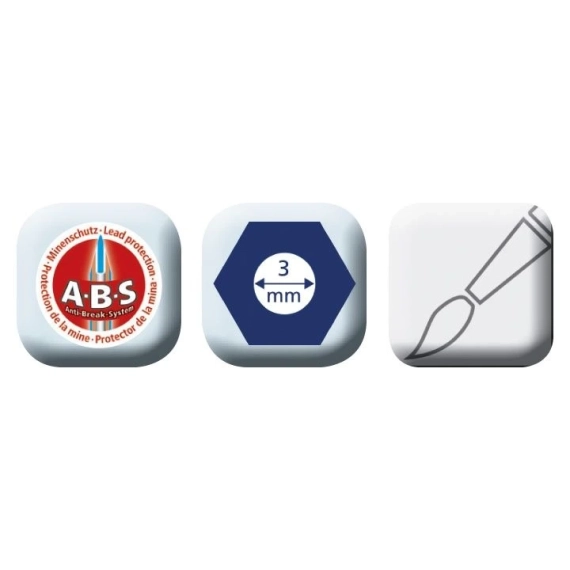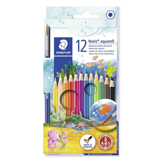 Denne fargeblyanten bruker et spesielt mykt bly som gir dype og sterke farger på arket. Blyanten byr på en lang rekke fargeteknikker inklusive bruk av vann og pensel. STAEDTLER Noris Club® akvarellblyant kommer i en rekke forskjellige farger, slik at du kan lage morsomme og detaljrike tegninger. Blyantens sekskantede form gjør det komfortabelt å skrive med den, noe som betyr at den ikke så lett ruller ned fra bordet. Den er utformet med et unikt antibruddsystem der blyet er forsterket av et hvitt beskyttelseslag for å øke bruddstyrken. Blyanten er konstruert for å veie lite og spisses lett med en hvilken som helst blyantspisser.