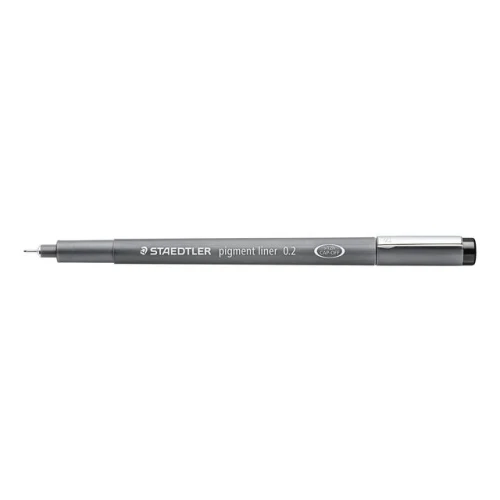 STAEDTLER Pigment Liner bruker pigmentblekk og gjør det svært komfortabelt å skrive. Denne finelineren bruker pigmentblekk som gir livlige farger og passer perfekt til skriving og tegning. Den er tørkesikker selv om lokket er av i flere dager, så du trenger ikke å skifte den ut så ofte. Den ergonomiske pennekroppen og den balanserte utformingen gir avslappet og komfortabel skriving og tegning. Den supertynne, metallkledde spissen sikrer god holdbarhet og en lett skriveopplevelse. Spissen er ekstra lang, noe som gjør denne finelineren ekstra lett å bruke til linjaler og sjablonger. - Ergonomisk kropp som gjør det komfortabelt å skrive - Slitesterke, metallkledde spisser og PP-pennekropp gir lang levetid - Tørkesikre penner som bruker vannbasert blekk - En ekstra lang spiss kan brukes til linjaler og sjablonger - Supertynn spiss - Strekbredde: 0,2 mm - Flysikker – lekker ikke blekk på flyturer - Farge: Svart