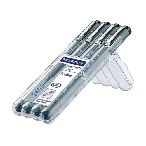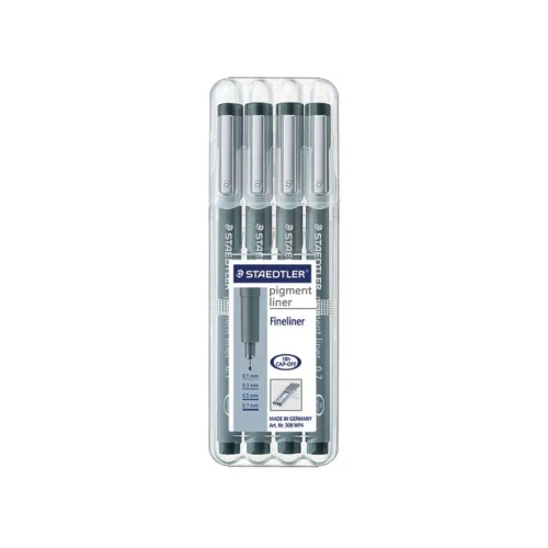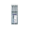 - Fiberpenn for skriving, skissering og tegning - Lang metallspiss gjør det enkelt for bruk med linjaler og sjablonger - Pigmentblekk i forhold til ISO standard 14145-2 - Lysekte og vannfast - Etui med 4 penner i assorterte strekbredder
