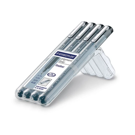 - Fiberpenn for skriving, skissering og tegning - Lang metallspiss gjør det enkelt for bruk med linjaler og sjablonger - Pigmentblekk i forhold til ISO standard 14145-2 - Lysekte og vannfast - Etui med 4 penner i assorterte strekbredder