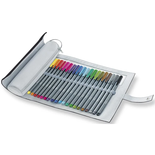 Triplus rullepenal i sort med 20 assorterte fineliner. DRY SAFE blekk som gjør at pennen kan ligge 14 dager uten at tørke ut. - Smart penal med plass til ekstra penner - Ergonomisk trekantet form for avslappet og enkel skriving - Vannbasert blekk - 20 assorterte farger - Strekbredde: 0,3 mm