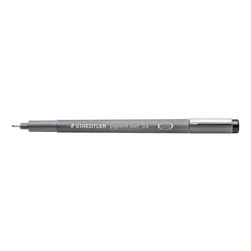 Fineliner PIGMENTLINER til skriving, skisser og tegning. Lang metallspiss, ideelt for bruk med linjaler og sjabloner. Lysekte og vannfast, trenger ikke gjennom papir. Dokumentegte og perfekt til signering på mange underlag slik som kreditkort, pass m.m. God til Zendoodeling og scrapbooking. Kan ligge uten kork i opp til 18 timer uten å tørke ut . Fåes i 12 strekbredder og inneholder sort blekk. Strekbredde 0.6 mm, sort. Art nr.308 06-9