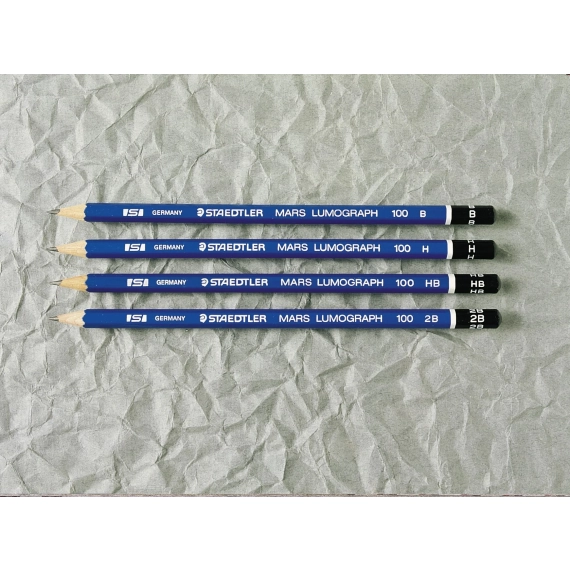 Denne blyanten av høy kvalitet er utformet for å gi utmerkede resultater på både papir og matt film. Den har en ergonomisk sekskantform som er behagelig å gripe. STAEDTLER Mars® Lumograph® 100 har et spesielt bly som er limt til trevirket og dermed er svært slitesterkt. Dette gir blyanten ekstra lang levetid. Blyanten er laget av lett og mykt trevirke som er enkelt å spisse. I tillegg kommer trevirket fra skoger som drives på bærekraftig vis, noe som gjør blyanten til et miljøbevisst alternativ. Det brede utvalget av blygraderinger gjør denne blyanten ideell for grafiske formgivere og kunstnere.