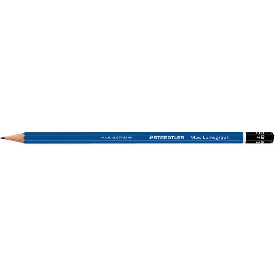 Denne blyanten av høy kvalitet er utformet for å gi utmerkede resultater på både papir og matt film. Den har en ergonomisk sekskantform som er behagelig å gripe. STAEDTLER Mars® Lumograph® 100 har et spesielt bly som er limt til trevirket og dermed er svært slitesterkt. Dette gir blyanten ekstra lang levetid. Blyanten er laget av lett og mykt trevirke som er enkelt å spisse. I tillegg kommer trevirket fra skoger som drives på bærekraftig vis, noe som gjør blyanten til et miljøbevisst alternativ. Det brede utvalget av blygraderinger gjør denne blyanten ideell for grafiske formgivere og kunstnere.