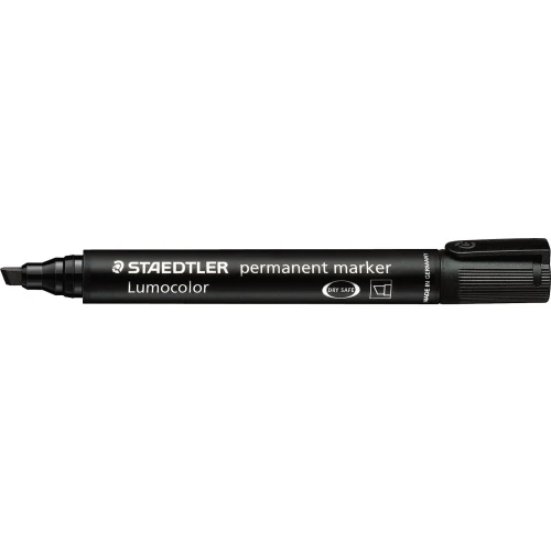 Med denne permanente merkepennen kan du skrive på nesten alle typer overflater, inkludert glass, metall, plast, stoff og transparenter. STAEDTLER Lumocolor® permanent merkepenn har en skråskåret spiss som gir en strekbredde på ca. 2–5 mm. Dette gjør den ideell for arbeid som krever fete, sikre linjer. Den har et spesielt blekk som er vannbestandig og ikke smitter av, slik at det tåler nesten alle slags forhold. Blekket tørker i løpet av sekunder, noe som gjør denne merkepennen til det perfekte valget for venstrehendte. Blekket inneholder heller ikke xylen eller toluen og avgir dermed mindre lukt enn det som er vanlig. Merkepennen har en hette og lommeklips som gjør den praktisk å bruke og lett å ta med seg. Videre er den påfyllbar og kan ligge uten hette i flere dager uten at blekket tørker.