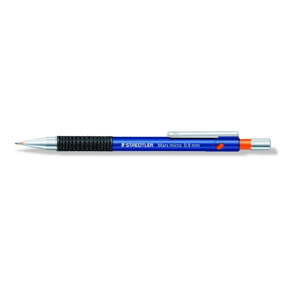 Stiftblyant MARS® micro 775 09 0.9 mm. Stiftblyant for skriving og tegning. Sklisikkert gummi grep. Clips og trykknakp i metall. Lang metallspiss, ideel til bruk med linjaler og sjabloner. PVC og latex-fritt viskelær. Enkel å refille med Mars micro carbon Stift (250 09 mm. stifter). Strekbredde 0,9mm. 775 09