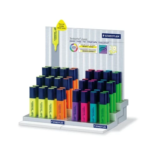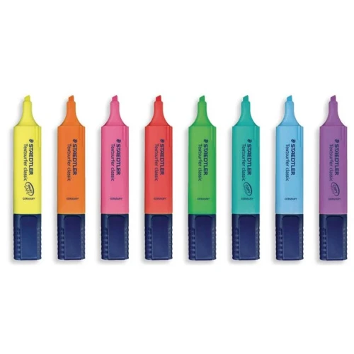 Denne merkepennen bruker en myk skråskåret spiss som skaper variable strekbredder, fra bred til tynn. Dette gjør at du lett kan merke, understreke og skrive. STAEDTLER Triplus® Textsurfer Classic har en stor kropp og blekkbeholder som sikrer lang levetid. Det lysbestandige og pigmentbaserte blekket er utskriftssikkert, noe som betyr at det ikke smitter av på utskrifter. Merkepennen benytter vannbasert neonblekk som tørker raskt, noe som fjerner problemet med avsmitting. Den er spesielt utviklet for bruk på papir, faks og kopier, og er ideell for å fremheve liten skrift. Den kommer dessuten med en lommeklips og hette, noe som er flott for å ta den med deg på farten.