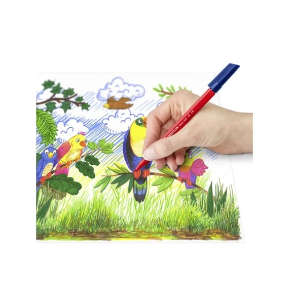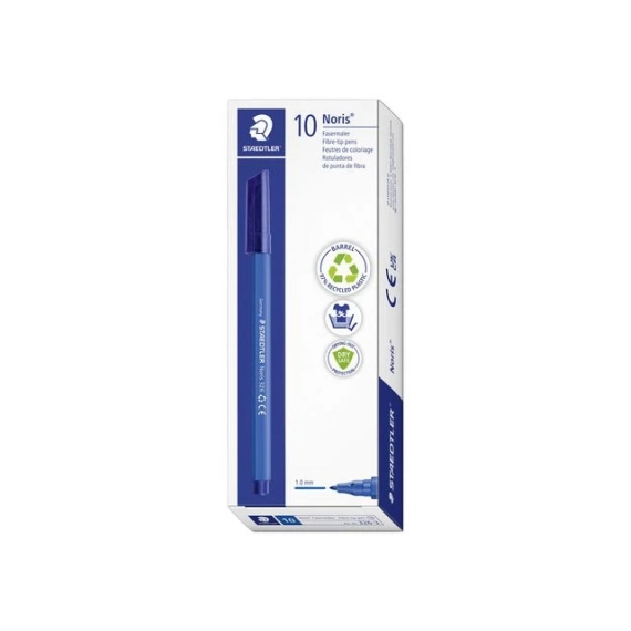 Noris® 326 er en trygg og slitesterk tusj, perfekt for barn og skolebruk. Denne høykvalitetstusjen fra STAEDTLER har en trykksikker spiss og kan ligge uten hette i flere dager uten å tørke ut. Det vannbaserte blekket vaskes enkelt ut av de fleste tekstiler, og ventilert hette gir ekstra sikkerhet ved bruk av barn. Pennen er laget av hele 97% resirkulert plast og kombinerer derfor brukervennlighet med et miljøvennlig valg. - Trykksikker fiberpenn med stabil fiberspiss - Vannbasert blekk - Tørker ikke ut selv uten hette på flere dager - Ventilert hette for økt sikkerhet - Laget av 97% resirkulert plast - Strekbredde: 1,0mm - Farge: Blå