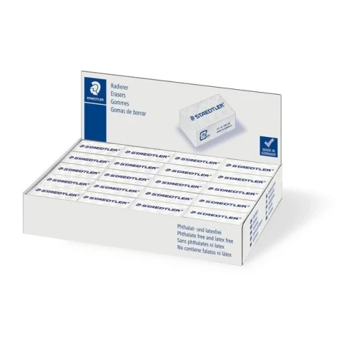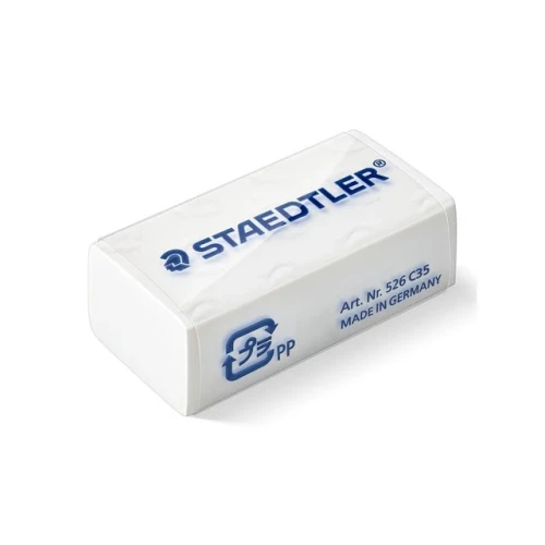 Staedtler viskelær 526 C35 cellofanpakket. - Farge: hvit - Mål: 35x18x11mm - Eske med 40 stk. - Vekt: 11 gram