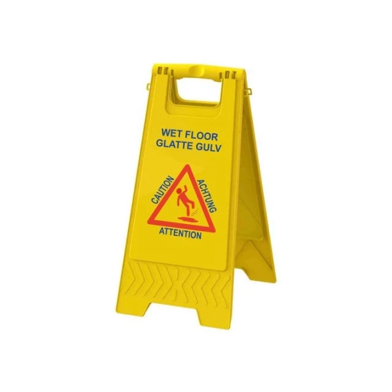 Varselskilt for å sette på gulv ved rengjøring og det kan være fare for glatte gulv.