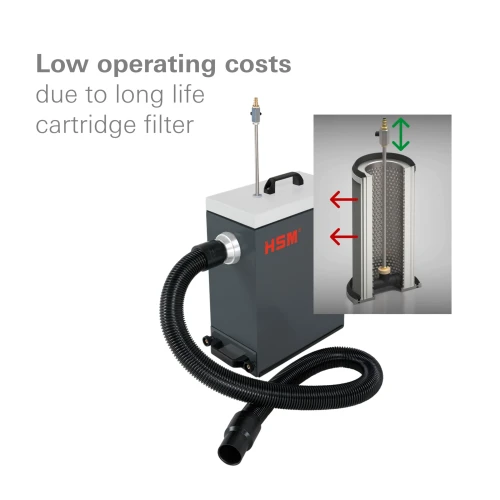 Den kompakte og ytelsessterke støvsugeren i støvklasse M er det perfekte tilbehøret til ren drift av forpakningspolstermaskin HSM ProfiPack P425. Kartong og støvparktikler støvsuges godt.• Støvsugeren egner seg til tilkobling til emballeringsmaskin HSM ProfiPack P425, inkl. adapsjonssett til avsugning.• Høykvalitets materialer og kvalitet „Made in Germany“ for sikkerhet og lang levetid.• Støvsugerens kompakte konstruksjon sparer plass.• Stille driftsmodus minimerer støyutviklingen på arbeidsplassen.• Den gjenbrukbare filterpatronen med lang levetid er svært økonomisk i bruk.• Den integrerte trykkluftsrengjøringsdysen gir enkel rengjøring av filterpatronen.• Støvsugeren overholder kravene til støvklasse M.• Enkel avfallshåndtering der støvet samles opp i en oppsamlingsskuff med en oppsamlingsbeholder som er lett å fjerne.• Støvsugeren har en vekselstrømtilkobling.• Håndtaket gjør at apparatet kan brukes mobilt.