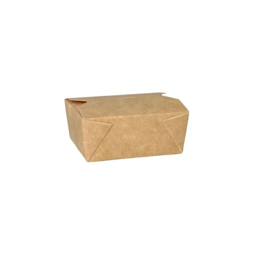 Praktisk matboks i papp uten belegg, for take-away. Engangs matemballasje som er funksjonell og lett å håndtere. Når boksen er fylt, brettes de fire klaffene ned, og lukkes ved å føre den øverste klaffen inn i et spor. Takeaway-boksen i 100% papp er et godt valg for takeaway-restauranter, kaféer og hurtigmatutsalg. Boksen er også velegnet for catering til konferanser, messer, og andre større arrangementer hvor mange skal serveres samtidig. Matboksene kan brukes til både kalde og varme matvarer, og tåler et bredt temperaturområde, fra -35°C til +90°C. - Mål (LxBxH): 11x9x5cm - Volum: 500ml - Materiale: Papp av nyfiber cellulose - Tåler temperaturer fra -35 til +90°C