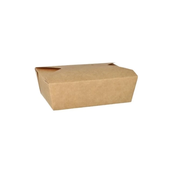 Praktisk matboks i papp uten belegg, for take-away. Engangs matemballasje som er funksjonell og lett å håndtere. Når boksen er fylt, brettes de fire klaffene ned, og lukkes ved å føre den øverste klaffen inn i et spor. Takeaway-boksen i 100% papp er et godt valg for takeaway-restauranter, kaféer og hurtigmatutsalg. Boksen er også velegnet for catering til konferanser, messer, og andre større arrangementer hvor mange skal serveres samtidig. Matboksene kan brukes til både kalde og varme matvarer, og tåler et bredt temperaturområde, fra -35°C til +90°C. - Mål (LxBxH): 14x10x5cm - Volum: 750ml - Materiale: Papp av nyfiber cellulose - Tåler temperaturer fra -35 til +90°C