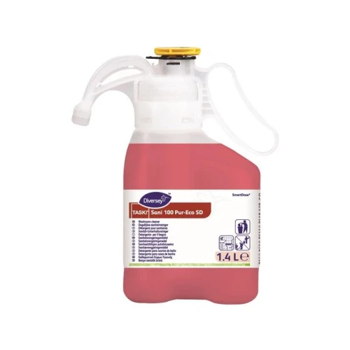 Miljømerket, svakt alkalisk produkt med farge og parfyme til daglig sanitærrengjøring. SANI serien er kvalitetsprodukter som er fargekodet og har piktogrammer for korrekt bruksforståelse. - Smart Dose doseringskontroll gir deg korrekt doseringsmengde, anti-drypp hode og mange andre fordeler - pH-verdi: ca. 10 - Fare- og sikkerhetsinformasjon: - EUH 210 Sikkerhetsdatablad er tilgjengelig på anmodning.