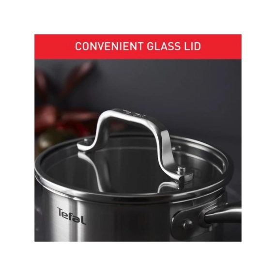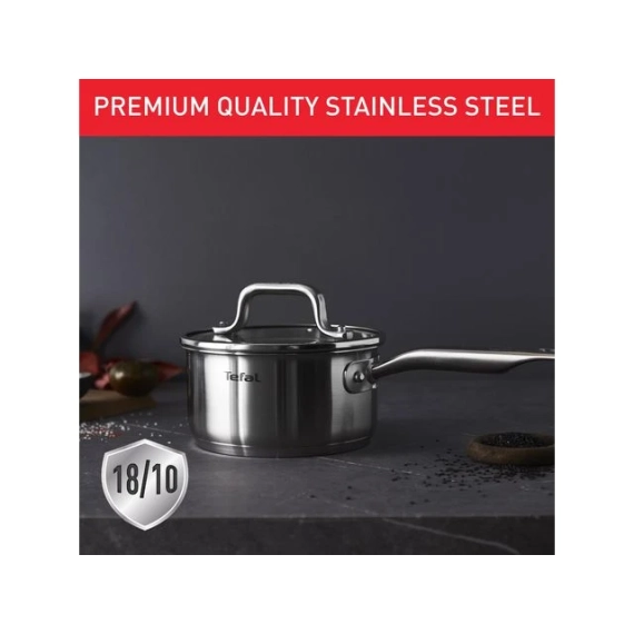 Praktisk kasserolle i rustfritt stål, med jevn varmefordeling og lang holdbarhet. Tefal Virtuoso er en sausekjele i rustfritt stål av høy kvalitet, for utmerket slitestyrke og lang holdbarhet. Den ekstra tykke bunnen gir jevn varmefordeling. Fastnaglet langt håndtak sørger for god stabilitet. Praktisk, innvendig måleskala gjør det enkelt å måle opp ingrediensene, og glasslokket med dampventil gir god oversikt over matlagingen. Utvendig finish i børstet stål. Kan brukes på alle platetopper, inkludert induksjon - Solid kasserolle med langt håndtak, egnet for alle platetopper, inkludert induksjon - Materiale utside/innside: Rustfritt stål - Glasslokk medfølger - Volum: 1,5 liter - Diameter: 16cm