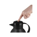 Hendig termokanne med et QuickPress-lokk som gjør det meget enkelt og praktisk å åpne og lukke kannen. Samba termokanne passer til alle anledninger, takket være den klassiske formen. Kannen har ypperlige isotermiske egenskaper. Holder drikken varm i mange timer og er perfekt for kaffe og te. Passer også for å holde kalde drikker kjølige. Med det ergonomiske håndtaket sitter kannen godt i hånden. Kannen er 100% lekkasjesikker når den er lukket igjen. Produktet bør ikke vaskes i oppvaskmaskin. - TV-kanne med hurtigtrykk for enkel bruk - Volum: 1 liter - Farge: Sort