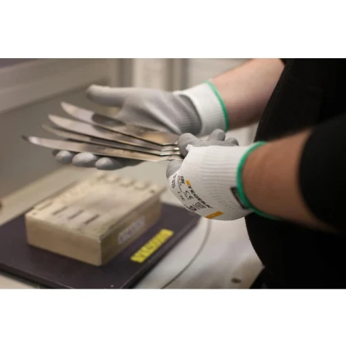 TEGERA 430, populær kuttbeskyttelseshanske for en rekke bruksområder. En kombinasjon av høy komfort, fleksibilitet og middels kuttbeskyttelse takket være designen og CRF®-teknologien. Pustende håndbak og grått PU-belegg i håndflaten med jevn finish gir et godt grep på tørre til lett fuktige overflater. - Grep design: Glatt overflate - Fôrmateriale: 13 gg, CRF®-teknologi, HPPE, Nylon, Spandex - Farge: Grå, hvit - Standarder og merking: Cat.II, CE merket, EN ISO 21420:2020, EN 388:2016+A1:2018 4X42B