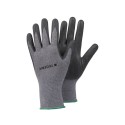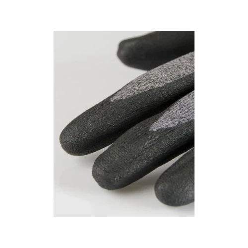 Myk og pustende 15gg strikket syntetisk hanske, håndflatedyppet med nitrilskum for god følbarhet og bedre grep. Egnet for lette oppgaver i tørre miljøer. Smussmaskerende mørkegrå og svarte farger gir lengre bruksvarighet. - Næringsmiddelgodkjent (ikke for fet mat) og Oeko-Tex-sertifisert - Viktigste bruksområder: Finmonteringsarbeid, monteringsarbeid, inspeksjonsarbeid, maskinoperatør, malerarbeid, installasjonsarbeid, anleggsarbeid, maskinførerarbeid, lagerarbeid - Standarder og merking: Cat.II, CE merket, EN 388:2016 4132X, EN 420:2003+A1:2009 - Håndflatedyppet med svart nitrilskum - Fôrmateriale: 15gg, Nylon, Spandex - Grep design: Gripemønster i foam