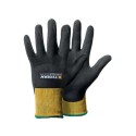 Fingerførlig arbeidshanske, 15 gg strikket med supermykt nitrilskum som gir utmerket grep på tørre overflater. Pustende materialer for komfort hele dagen. Beskyttelse mot kontaktvarme opp til 100 °C. Hudvennlig med Derma-test og Oeko-Tex-sertifikat. - Type: Varmebeskyttende hansker, Arbeidshansker for presisjonsarbeid - Grepdesign: Gripemønster i foam - Fôrmateriale: Nylon, Spandex, 15 gg - Farge: Sort, gul - Standarder og merking: Cat.II, CE merket, EN 388:2016, 1121X EN 407:2004 X1XXXX, EN 420:2003+A1:2009