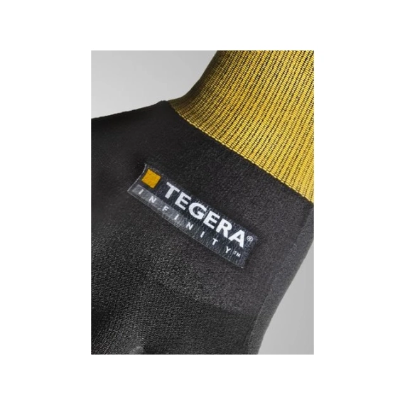 Fingerførlig arbeidshanske, 15 gg strikket med supermykt nitrilskum som gir utmerket grep på tørre overflater. Pustende materialer for komfort hele dagen. Beskyttelse mot kontaktvarme opp til 100 °C. Hudvennlig med Derma-test og Oeko-Tex-sertifikat. - Type: Varmebeskyttende hansker, Arbeidshansker for presisjonsarbeid - Grepdesign: Gripemønster i foam - Fôrmateriale: Nylon, Spandex, 15 gg - Farge: Sort, gul - Standarder og merking: Cat.II, CE merket, EN 388:2016, 1121X EN 407:2004 X1XXXX, EN 420:2003+A1:2010