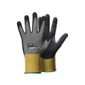 Fingerfølsom kuttbestandig hanske, kuttnivå B, med berøringsskjermfunksjon. Svært lett takket være 18 gg strikking med kuttbestandig CRF®-teknologi. Håndflate dyppet i supermykt nitrilskum som gir utmerket grep på tørre overflater. Forsterket tommelskritt for lengre levetid. Egnet for presisjonsarbeid. Pustende materialer for komfort hele dagen. Beskyttelse mot kontaktvarme opp til 100 °C. Hudvennlig med Derma-test og Oeko-Tex-sertifikat. - Type: Hansker med skjærebeskyttelse, Varmebeskyttende hansker - Grepdesign: Gripemønster i foam - Fôrmateriale: 18 gg, Karbon, CRF®-teknologi, HPPE, Nylon, Stålfibertråd - Farge: Sort, gul - Standarder og merking: Cat.II, CE merket, EN 388:2016 4X41B, EN 407:2004 X1XXXX, EN 420:2003+A1:2014