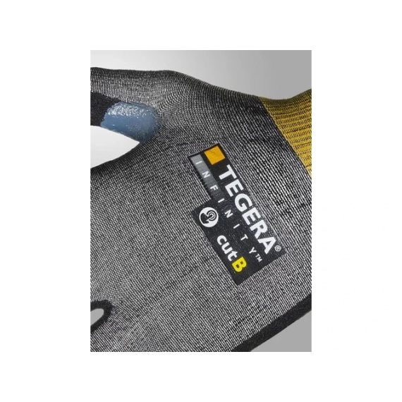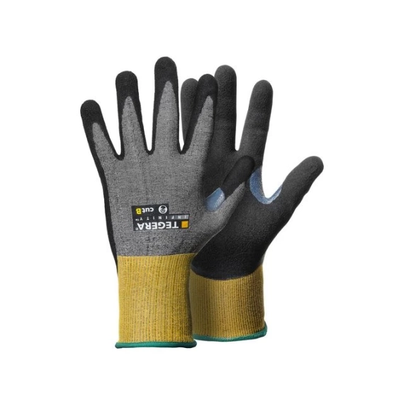 Fingerfølsom kuttbestandig hanske, kuttnivå B, med berøringsskjermfunksjon. Svært lett takket være 18 gg strikking med kuttbestandig CRF®-teknologi. Håndflate dyppet i supermykt nitrilskum som gir utmerket grep på tørre overflater. Forsterket tommelskritt for lengre levetid. Egnet for presisjonsarbeid. Pustende materialer for komfort hele dagen. Beskyttelse mot kontaktvarme opp til 100 °C. Hudvennlig med Derma-test og Oeko-Tex-sertifikat. - Type: Hansker med skjærebeskyttelse, Varmebeskyttende hansker - Grepdesign: Gripemønster i foam - Fôrmateriale: 18 gg, Karbon, CRF®-teknologi, HPPE, Nylon, Stålfibertråd - Farge: Sort, gul - Standarder og merking: Cat.II, CE merket, EN 388:2016 4X41B, EN 407:2004 X1XXXX, EN 420:2003+A1:2014