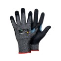 Fingerfølsom kuttbestandig hanske med høyeste kuttmotstandsnivå F og berøringsskjermfunksjon, egnet for allsidig arbeid. 13 gg strikket med kuttbestandig CRF®-teknologi. Håndflate dyppet i supermykt nitrilskum som gir utmerket grep i tørre og litt fuktige miljøer. Forsterket tommelskritt for lengre levetid. Pustende materialer for komfort hele dagen. Beskyttelse mot kontaktvarme opp til 100 °C. Hudvennlig med Derma-test og Oeko-Tex-sertifikat. - Type: Hansker med skjærebeskyttelse, Varmebeskyttende hansker - Grepdesign: Gripemønster i foam - Fôrmateriale: 13 gg, Basaltfiber, CRF®-teknologi, HPPE, Polyester, Spandex, Stålfibertråd - Farge: Sort - Standarder og merking: Cat.II, CE merket, EN 388:2016+A1:2018 4X43F, EN 407:2020 X1XXXX, EN ISO 21420:2021