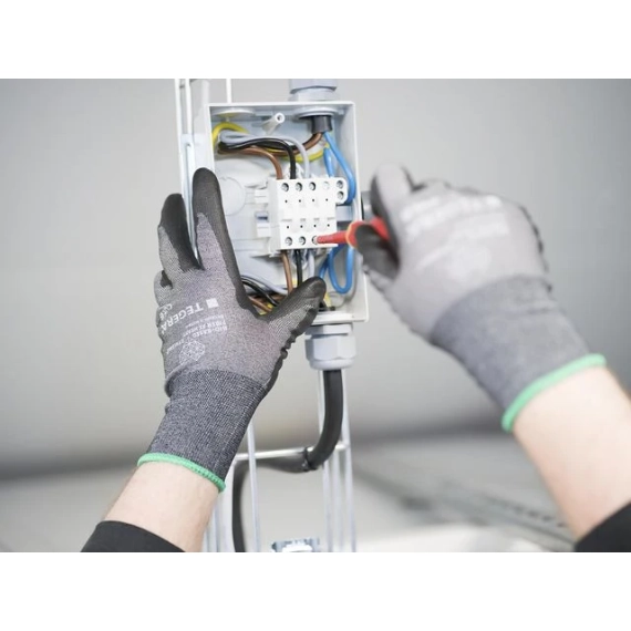 Den tynneste og mest fingerfølsomme hanske med kuttbeskyttelse for finmonteringsarbeid med små skarpe gjenstander. Kuttbeskyttelsen er laget med verdens første biobaserte kuttbeskyttelsesfiber - Dyneema®, en innovasjon som reduserer avhengigheten av fossile råvarer og karbonavtrykket til din bedrift. Bra for miljøet! Hansken er ekstremt lett, 18 gg, og er PU-dyppet for bedre grep. Kuttmotstand nivå B. - Type: Hansker med skjærebeskyttelse - Grepdesign: Glatt overflate - Fôrmateriale: 18 gg, Bio-Based Dyneema®, Dyneema® Diamond Technology, Nylon, Spandex - Farge: Grå - Standarder og merking: Cat.II, EN 388:2016+A1:2018 3X41B, EN ISO 21420:2021