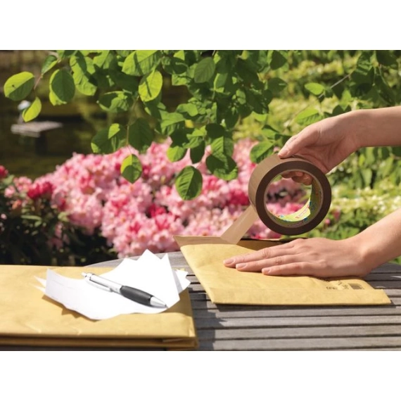 Emballasjetape tesapack® Paper ecoLogo® er en miljøvennlig pakketape. Den er ikke bare laget av ubleket papir med et høyt innhold av resirkulerte fibre.