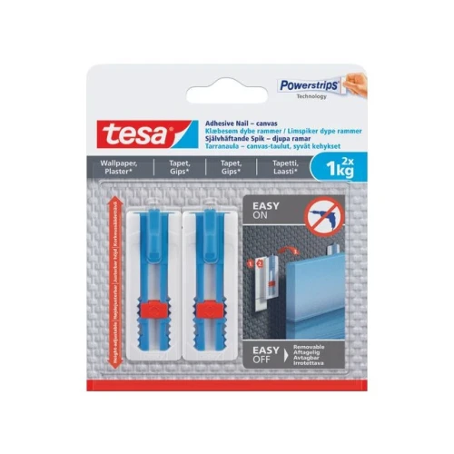 tesa® selvklebende strimler for tapet og gips 1 kg. Refillpakke for gjenbruk av tesa® limspikrer for tapet og gips 1 kg. Et spesielt limsystem med en skumkjerne gjør at strimmelen optimalt kompenserer for ujevnheter i de fleste strukturerte og ømfintlige overflatene. Designet for bruk på tapet og gips for å sikre langvarig og sikkert grep uten behov for en hammer eller boremaskin. Powerstrips-teknologi betyr at det er mulig å henge opp bilder eller andre dekorasjoner og deretter fjerne dem lett uten å skade overflaten. Bruk alltid i kombinasjon med en tesa® limspiker. - or teksturerte og sensitive overflater som tapet eller gips - For gjenstander opptil 1 kg1 per spiker eller 2 kg ved hjelp av 2 spikrer - Kan fjernes uten å etterlate merker - Gjenbrukbar med en ny strimmel - For optimale resultater kan du lese instruksjonsheftet