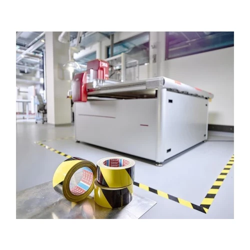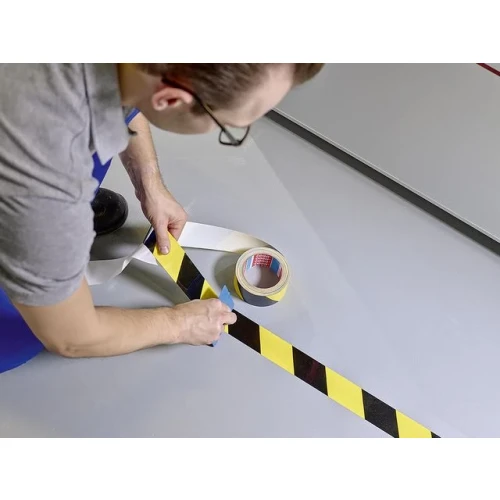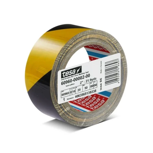 TESA 60960 Anti-Scratch PET Gulvmarkeringstape er en robust selvklebende tape med høy ytelse for permanent og langvarig gulvmarkering og varsling. Den slitesterke, robuste og elastiske markeringstapen kombinerer et beskyttende topplag i PET materiale, sterke markeringsfarger og et klebemiddel i syntetisk gummi. Avhengig av fargen kan den ripefrie gulvmarkeringstapen eksplisitt brukes som advarselstape. - Holdbart og slitesterkt bæremateriale i PET/PP-laminat for permanent gulvmerking og varsling - Beskyttende topplag i PET sikrer lang levetid og permanente sterke farger som ikke slites av over tid - Sterke farger sikrer sterk synlighet for enkel identifikasjon - Permanent og langvarig markering for områder med stor trafikk, som f.eks. fabrikker, lager, kontorer eller sykehus - Markering av rømningsveier, passasjer eller farlige områder – tåler å bli overkjørt av gaffeltrucker - Klebetype: syntetisk gummi - Tykkelse: 0,175mm - Klebeevne på stål: 4.5 N/cm - Farge: sort/gul