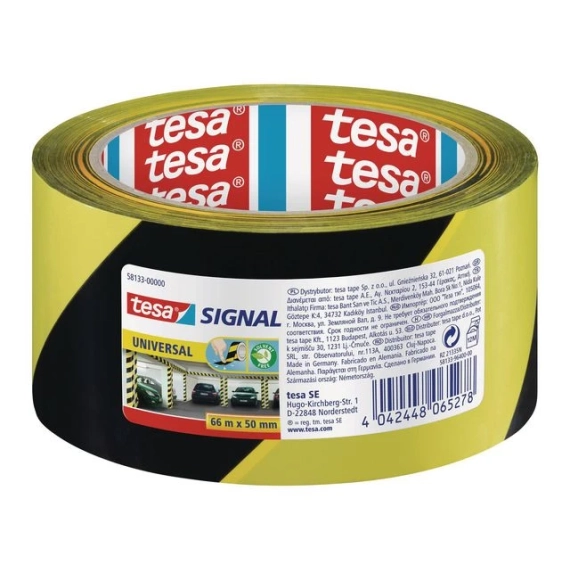 tesa advarsels-/avmerkingstape Kraftig, holdbar og vanntett kvalitet. Fremstilt i PP-plast. Til merking av maskiner og utstyr, oppmerking av gulv, trappetrinn samt avsperring av byggeplass og ulykkessteder m.m. - Mål: 50mmx66m