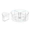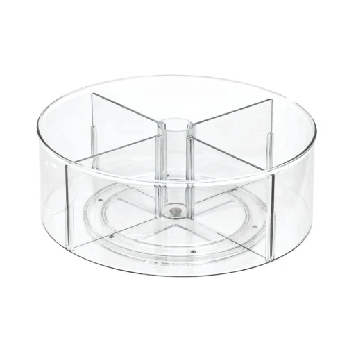 The Home Edit kolleksjon tilpass din «Lazy Susan» etter ditt behov og oppdag hemmeligheten til uanstrengt organisering. De avtakbare skilleveggene lar deg sortere og oppbevare alt fra krydderier, macaroni og snacks, til verktøy og rengjøringsmidler. - Bestående av flyttbare inndelinger som holder flasker og løse gjenstander oppreist, slik at alt innhold alltid er lett å se og hente ut, i tillegg til at den roterer 360° - Usedvanlig slitesterkt, med et klart, rent utseende som er perfekt for et organisert skap, skuff og pantry - Laget av hard, slitesterkt og klar Resipreme- plast - Inkluderer en flyttbare oppbevaringsboks og fire avtakbare skillevegger - Tåler ikke oppvaskmaskin - Høyde ca 11cm